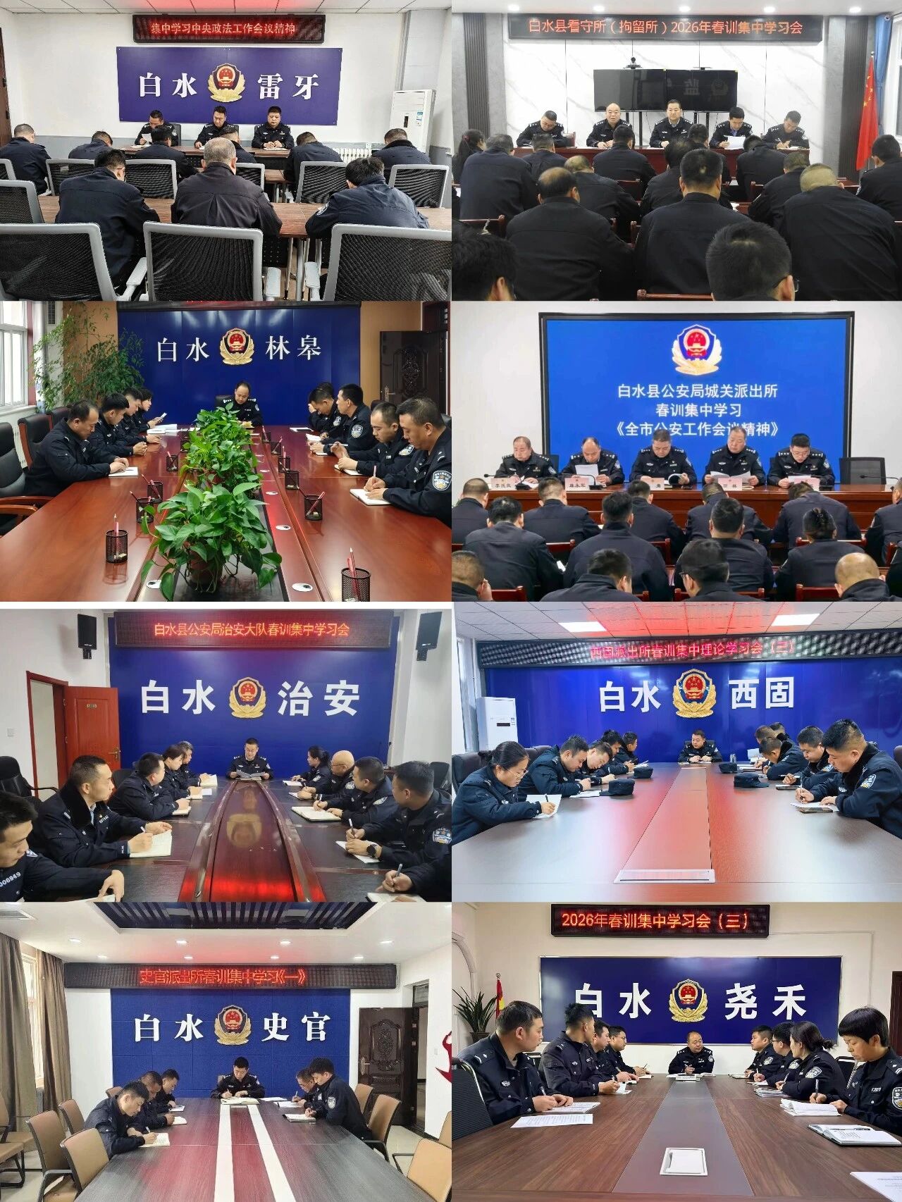 为深入学习贯彻新时代公安工作要求,全面锻造“四个铁一般”公安铁军,白水县公安局紧扣政治建警、实战强警核心任务,周密部署、全面推进2026年度春季全警大练兵,全局上下闻令而动、同向发力,以理论学习铸魂、队列训练塑形、小教官实训强能、笔记心得固基,扎实开展全维度、多层次春训活动,迅速掀起练兵热潮,为全年公安工作高质量发展筑牢坚实根基。