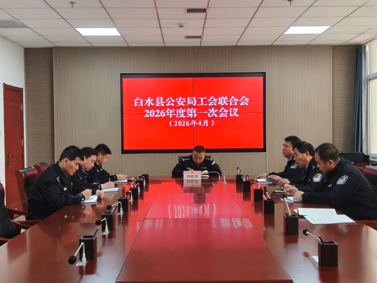 4月2日,白水县公安局工会联合会召开2026年度第一次会议。会议围绕学习县总工会2026年工作要点、总结2025年工作、会费收缴及推进职工互助保障等内容开展。局党委副书记、政委刘红军出席并讲话,党委委员、政工室主任权龙岗、工会联合会全体委员参加。